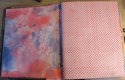 Here's the two I made and sent off. Lots of texture and acrylics on gessoed red rosin paper with fun yarn trim.